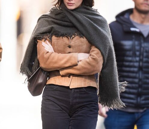 Now, Hollywood’s newest generation of darlings is adopting the newsboy cap look, which was first worn by men in the late 19th and early 20th centuries. Last month, Kendall Jenner stepped out in New York City, wearing a black tweed iteration with a brown suede jacket and dark gray fringe scarf. Back in January, Keke Palmer donned a dark gray leather style from Wolford. The actor wore the hat with a plaid ensemble from Schiaparelli’s Fall/Winter 2024 collection and knee-high leather boots.