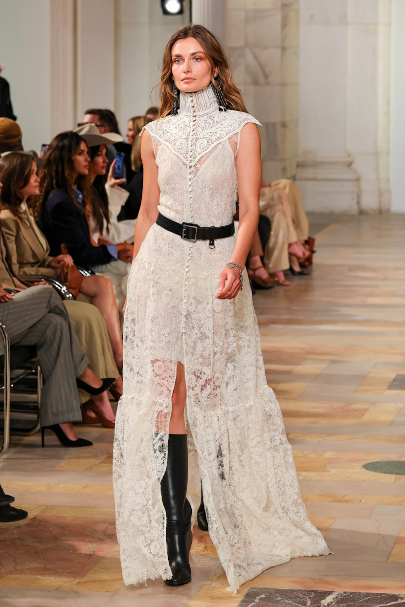 While Ralph Lauren may have opted out of showing his Fall 2025 collection during New York Fashion Week this past February, no one doubted the iconic brand would have its moment when the time was right. Following an epic stable-adjacent show in the Hamptons last September, the designer chose an equally stunning venue for his latest April 17 presentation, which celebrates “the modern romantics.” Yes, Tribeca’s airy and beautifully lit Jack Shainman Gallery, which has championed emerging artists for the past 40 years, felt like the perfect setting to debut Ralph Lauren’s “fresh” take on fall, which was admittedly a departure from the earthy, bohemian, horse-girl look presented for spring.