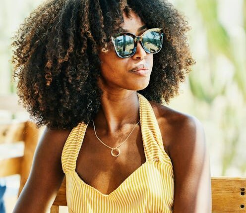 “Applying a light oil or conditioner as a pre-poo adds an extra barrier of protection,” Bomani tells TZR. She also says wetting your hair with clean water first helps reduce how much salt or chlorine your coils and curls absorb. “I also recommend braiding or twisting your hair to minimize tangling and breakage while swimming. Not with extensions, but your own hair,” she says.