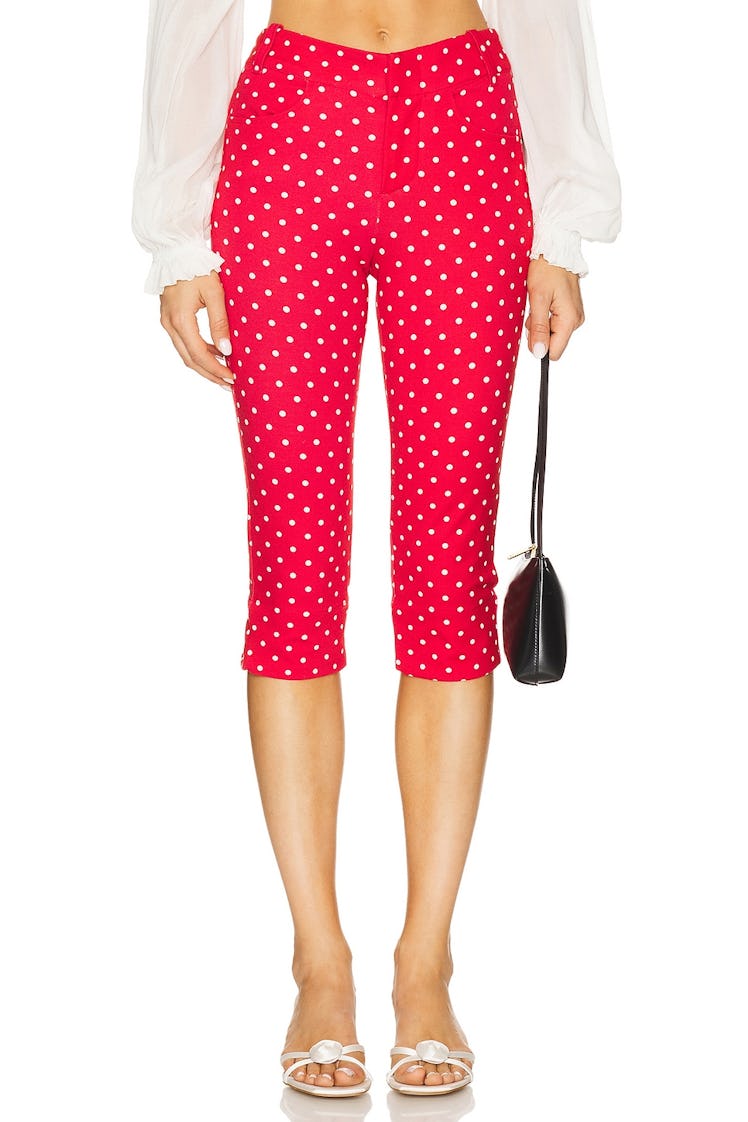 Ready or not, the capri trend is back for round two this summer. If you’re down to get a bit experimental with the calf-baring silhouette, slip into a polka dot iteration. Playful and polished, the piece reads French girl-approved. Give the outfit a preppy touch by way of a short-sleeved polo.