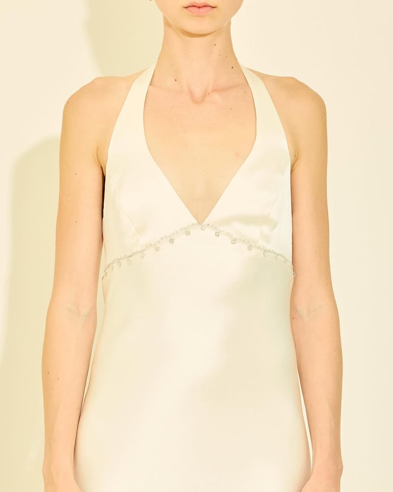 Whether you’re in the market for a jumpsuit, an elongated gown, or something in the middle, The Kit Vintage has you covered. Goldberg’s shop even offers the little essentials you might’ve forgotten about — think: earrings, a brooch, a purse, a scarf, or outerwear. Basically, it’s a one-stop-shop for every bride in the book.