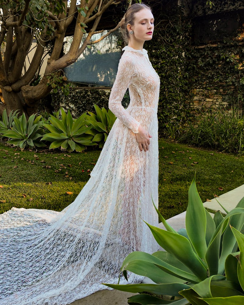 Does The Kit Vintage sound familiar? That’s because the L.A.-based boutique provided Angelina Jolie and Pamela Anderson with archival looks during last year’s award season. Goldberg’s success among celebrities comes 11 years after her bridal journey began. “In 2014, when we began our journey with our bridal clientele inside of Platt Boutique (an L.A. jewelry store), we understood that we were filling a large gap in the bridal space,” Goldberg says. “Times have changed, so of course there are now more vintage bridal shops that have opened since then, but we’re proud to know that we were pioneers who noticed the gap and took the initiative to open the lane.”