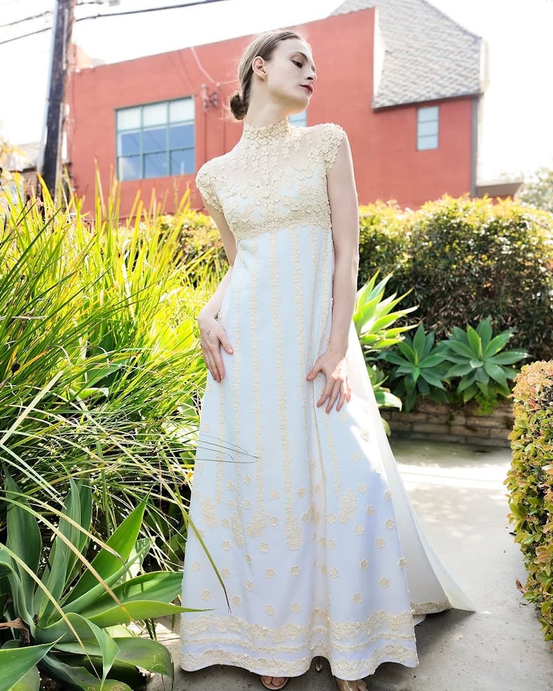 In just five years, Laubach’s boutique has become a marquee vintage spot for L.A.-based brides. Transplant Vintage originally offered everyday wear as well, but in recent years, she switched to exclusively bridal. “I got so much more joy out of beautiful dresses than say, a pair of jeans,” Laubach says. She opened her L.A. showroom in Feb. 2024 to offer clients “a more personal and intimate experience.” Inside the brick-and-mortar spot, you’ll be greeted by an assortment of unique gowns that span the entire 20th century, starting with ‘30s slips, romantic ‘50s tea-length dresses, and even ethereal ‘70s attire. “I’m always finding dresses that I can’t believe exist,” Laubach says, so prepare for a one-of-one shopping experience.