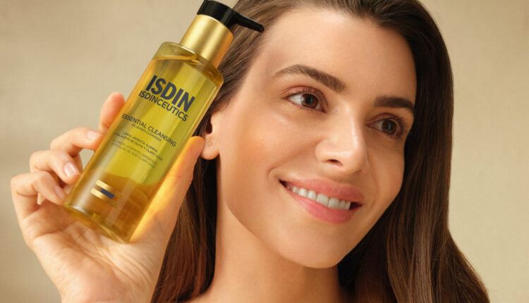 Wet your face with lukewarm water. If you’re using an oil-to-milk formula like Isdinceutics Essential Cleansing, massage the oil until it turns into a light, milky texture—that’s the emulsion in action!