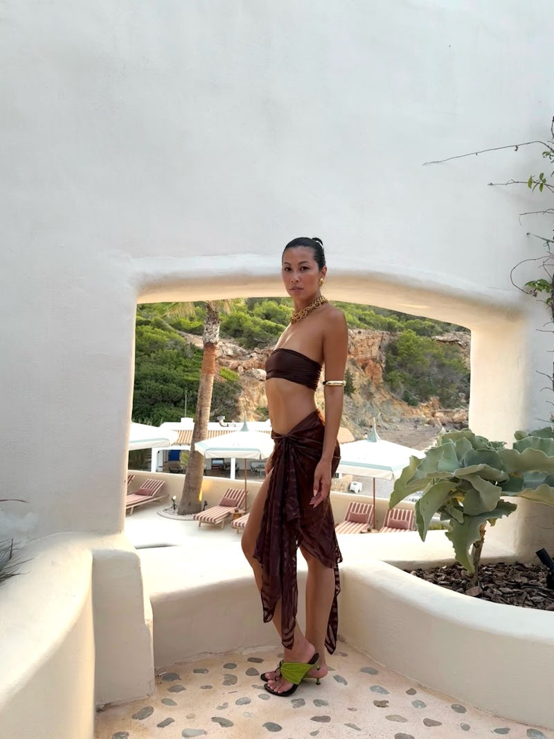 This summer, the executive turned on her OOO and decamped to Ibiza for a much-needed girl’s getaway. Much like her home base of Los Angeles, Gerona loves that the Balearic island has something for everyone. “From hiking to boat days to beautiful beaches and clubs, Ibiza has it all,” she tells TZR. “I also love that the people are all so kind and the food is delicious, with clean, healthy options.”