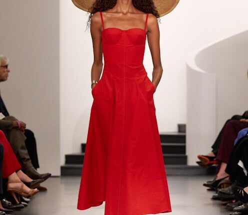 Designed for the woman who is described as both a “dreamer” and a “doer,” the new collection — presented at the brand’s headquarters at 650 Madison — was chock-full of easy, breezy vintage-inspired silhouettes with modern edge. Think red cotton sundresses with corseted bodices (á la Brigitte Bardot), larger- than-life wide-brimmed hats and sweeping, floor-length black-and white halter dresses.