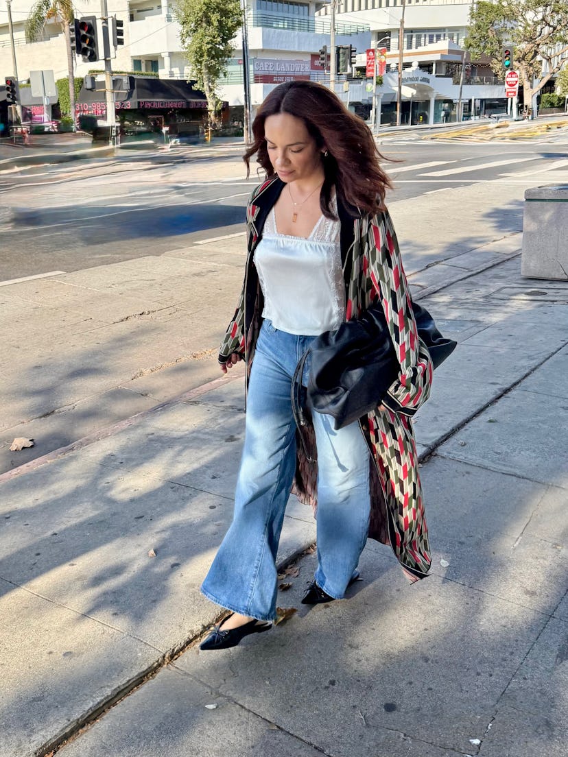 “I love a two-fer, so I was delighted to discover that this printed knit jacket actually doubles as a dress. For daytime meetings affairs, I’ve been throwing it over a blouse, relaxed denim, and pointed flats to keep things chic yet low-key. That said, for a recent formal dinner I utilized the piece’s accompanying belt and wore the jacket as a dress over textured boots. My favorite aspect of the jacket is its ‘70s-coded abstract print, which evokes a more polished bohemian vibe. Another bonus is the thicker Jacquard-knit texture, which allows for some comfy stretch, which is essential in the cooler months ahead. I predict this multi-tasker will be working double time.”