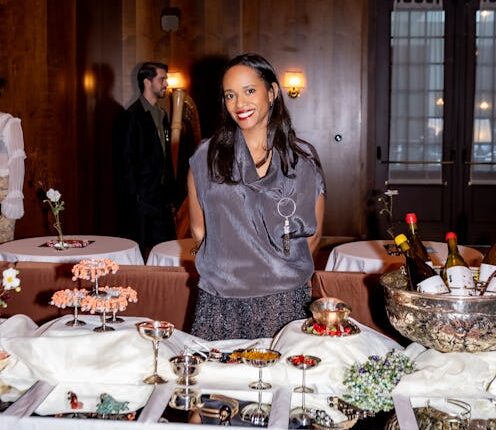 Then, there’s the matter of the beading bars, a series of IRL jewelry-making experiences Moubayed began hosting a few years ago. “We have individuals that will help guide you through creating your piece and make sure you walk away feeling really proud,” she tells me on a September afternoon over Zoom. Her laptop screen is broken and my 3-year-old is home sick from day care, so we are speaking with our respective cameras off and frequent interruptions from my daughter. I’m struck by how calm and clear-headed she sounds — not only because my preschooler keeps barging into our conversation, but because Don’t Let Disco just wrapped its first-ever New York Fashion Week presentation one day prior. The whole affair sounds like it required a lot on the planning and execution front: The new collection was presented alongside a full dinner party-inspired tablescape of objets d’art, like shrimp cocktail on ice made from wooden and clear beads, and a well-stocked beading bar for guests to partake in.