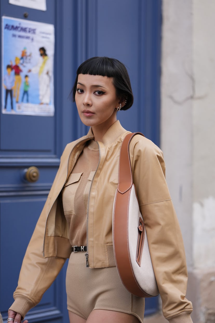 A blunt micro bob and bangs will always turn heads — even when you’re in a crowd of stylish PFW attendees.