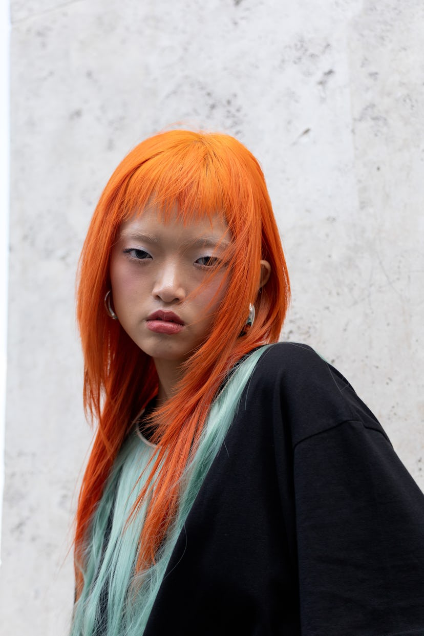 This style lays straight across the forehead, and while it typically hits just above the eyebrows, this season’s most stylish guests are also taking it up a few notches, er, inches. Micro blunt bangs were spotted all over Paris paired with of-the-moment haircuts, like the bob, and hairstyles, like ribbon-adorned pigtails. There was even some color play with guests taking vibrant hues, such as orange, for a spin. Yes, that’s the beauty of fringe — it’ll elevate virtually any look.