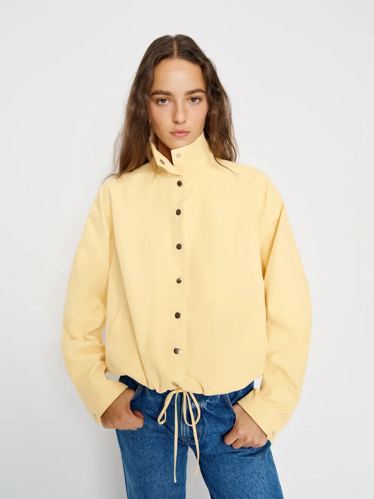 Sporty jackets have been enjoying a moment for the past year, and that doesn’t appear to be changing this season, according to Kelner. “They’re a fresh take on functional outerwear — sleek nylon or washed cotton styles with exaggerated high collars, toggle cords, and tonal zips [are particularly popular],” she explains, adding that they bring an effortless, athletic edge to fall layering. “Think elevated utility that pairs just as easily with denim as it does over a slip dress.”