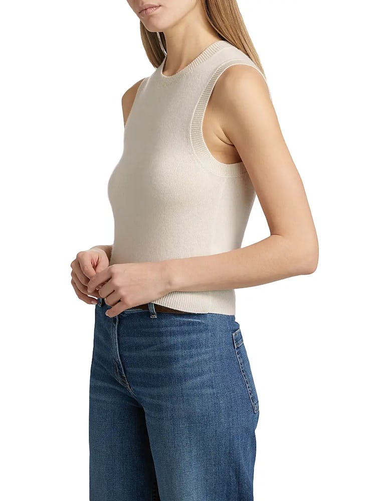 A ribbed cream sweater vest pairs with virtually anything in your closet, and khaki pants are no exception. With the addition of a blazer or long-sleeve top under the knit, this outfit feels suitable for the office, especially with accessories like shiny jewelry and polished flats.