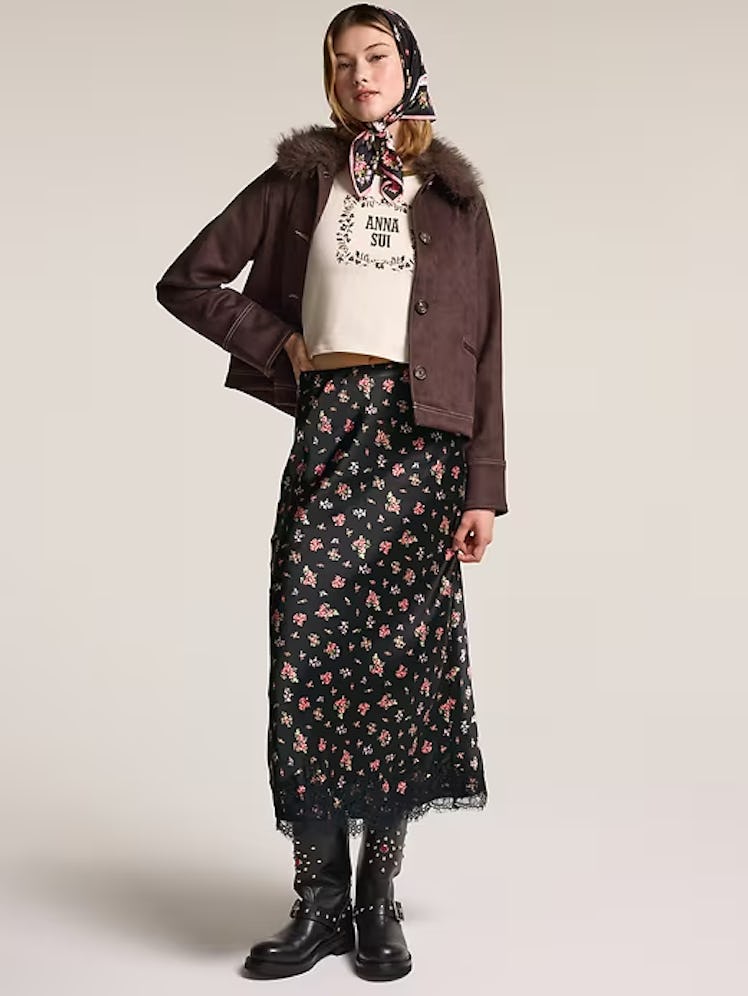 The Old Navy x Anna Sui limited-edition collaboration truly has something for everyone. From lace tops and ruffled sweaters, vegan leather coats, midi skirts, and printed dresses, the over 50-piece collection is priced from $20 to $120. Posen and Sui really thought of everything. Sizes range from XS to 4X. Below, you can shop some of our favorite picks from the historic collaboration.