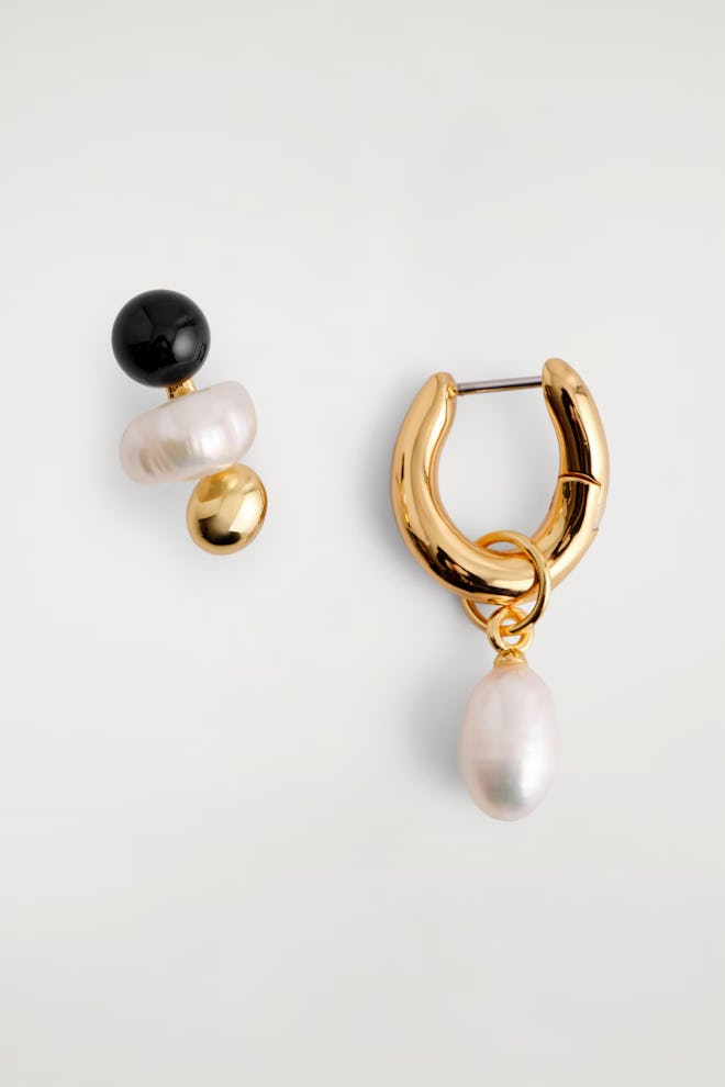 For an easy introduction to the mismatched jewelry look, opt for these simple but sophisticated freshwater pearl earrings from COS.