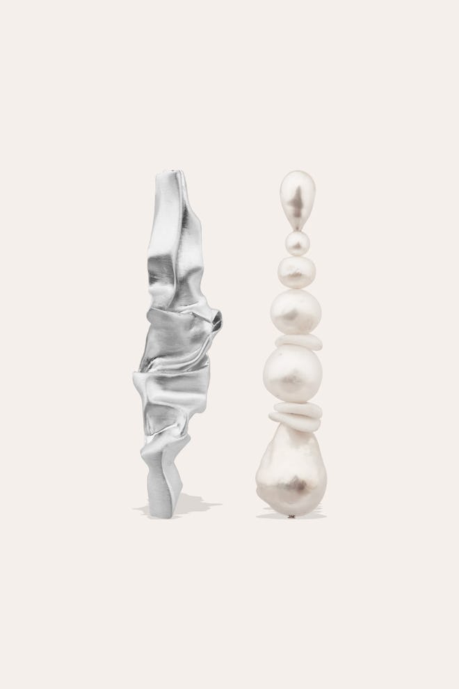 Featuring a crumpled gold vermeil dangly earring alongside a pearl drop style, Comepletedworks’ iteration will bring an air of opulence to every winter outfit.