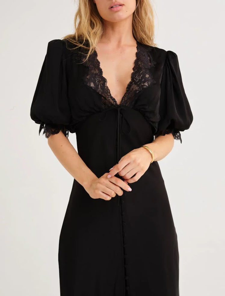 First dates are nerve-racking enough, so why add more stress with your outfit planning? Here’s an easy, one-and-done look that’s sure to impress: A maxi dress with a lace-trimmed neckline and puff sleeves. Toss a cute novelty bag on your shoulder and slip into those tried-and-true heels, and you’re good to go.