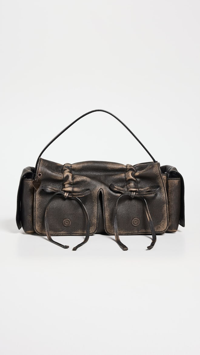 Pockets, bows, and distressed leather — this cocktail of details on Acne Studios’ vintage shoulder bag works surprisingly well together.