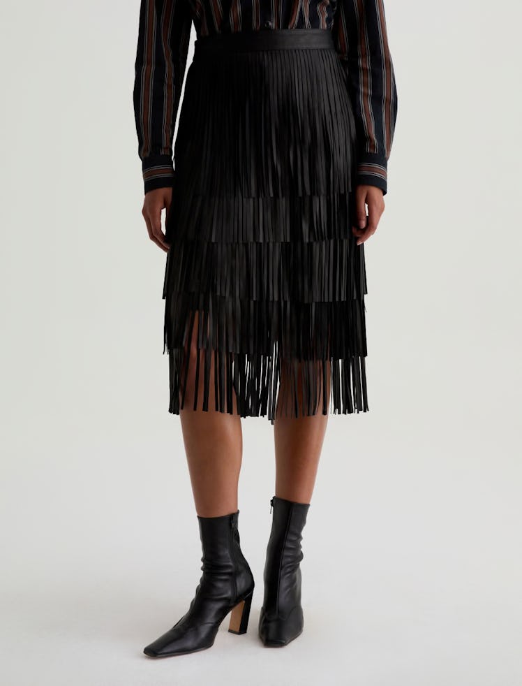 “I wear a lot of black and gray, so to shake things up, I’m constantly thinking about incorporating different textures into my wardrobe — which is, of course, easier during colder months. It’s safe to say that I was instantly drawn to this leather skirt and the way the fringes swayed in the wind. My first instinct was to anchor it with a chunky knit.