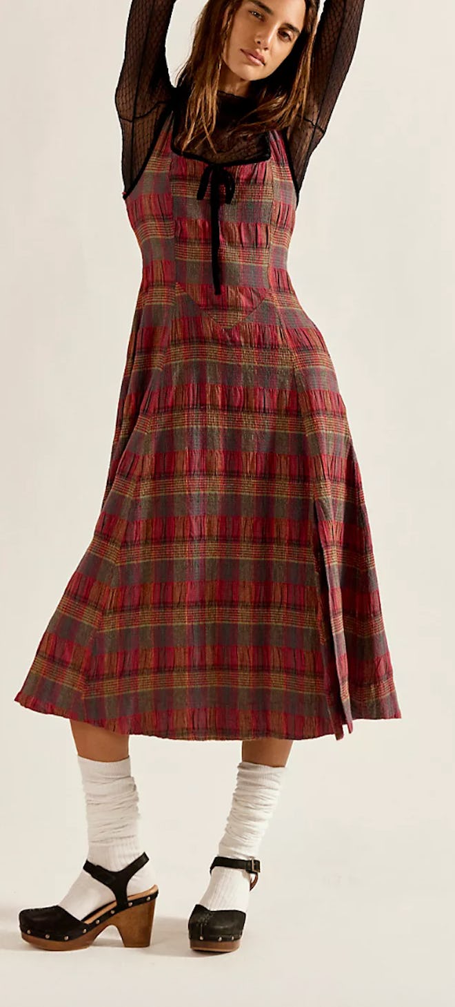 Plaid for the holidays? Groundbreaking. Jokes aside, this dress makes a strong case for the classic pattern. It can be dressed up with heels and a leather coat, or dressed down by layering it over a long-sleeve top with penny loafers. And yes, it has pockets.