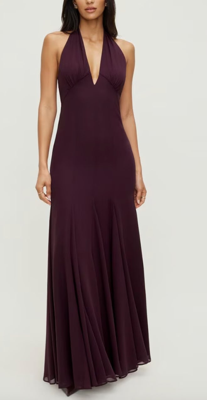 Burgundy has been one of the season’s most in-demand shades, and for good reason. The rich hue is universally flattering and instantly elevates any look. This dress leans into the trend with a deep plunging neckline and two elegant bow details that add a refined, romantic touch.