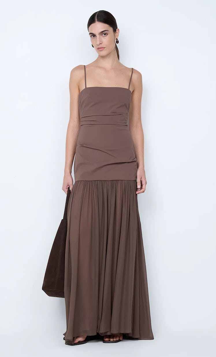 Pantone’s 2025 Color of the Year, Mocha Mousse, may have been replaced by 2026’s Cloud Dancer, but the masses aren’t abandoning brown this winter. In fact, espresso is the color du jour for dresses, notes Trotta. “It feels warm and endlessly wearable, which is why it remains among our best-selling Q4 colors year after year,” she explains. Angela O’Brien, the co-founder and creative director of Cleobella, agrees, adding, “Rich browns are replacing harsh black.” Sorry to your noir numbers.