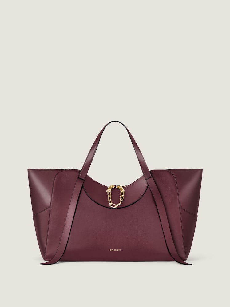 The grained leather bag, now available for preorder, will come in three sizes, small, medium, and large. You can choose from several colors, including classic black, aubergine, taupe, cream, pink, dark brown, and equestrian red. The Snatch is already showing off its practicality with the option of being carried by hand, on the shoulder, or crossbody (small size only). The tote also features a metal chain hardware available in gold and silver.