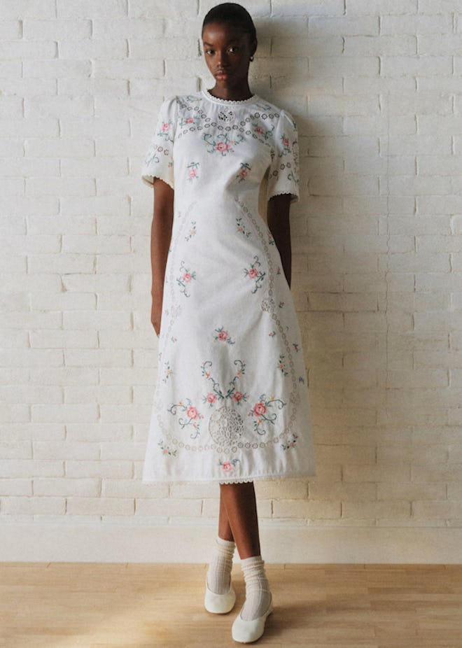 According to a statement from Monica Paolini, the co-founder of Sea, the collaboration — the labels’ third to date — celebrates femininity, texture, as well as the subtle, small details that make a look special. “With this collection, we wanted to create something that felt both familiar and new — rooted in our shared appreciation for craft, yet shaped by the distinct energy of our two worlds,” she continued. The result: Charming, vintage-inspired silhouettes featuring all manner of lace, embroidery, and crochet.