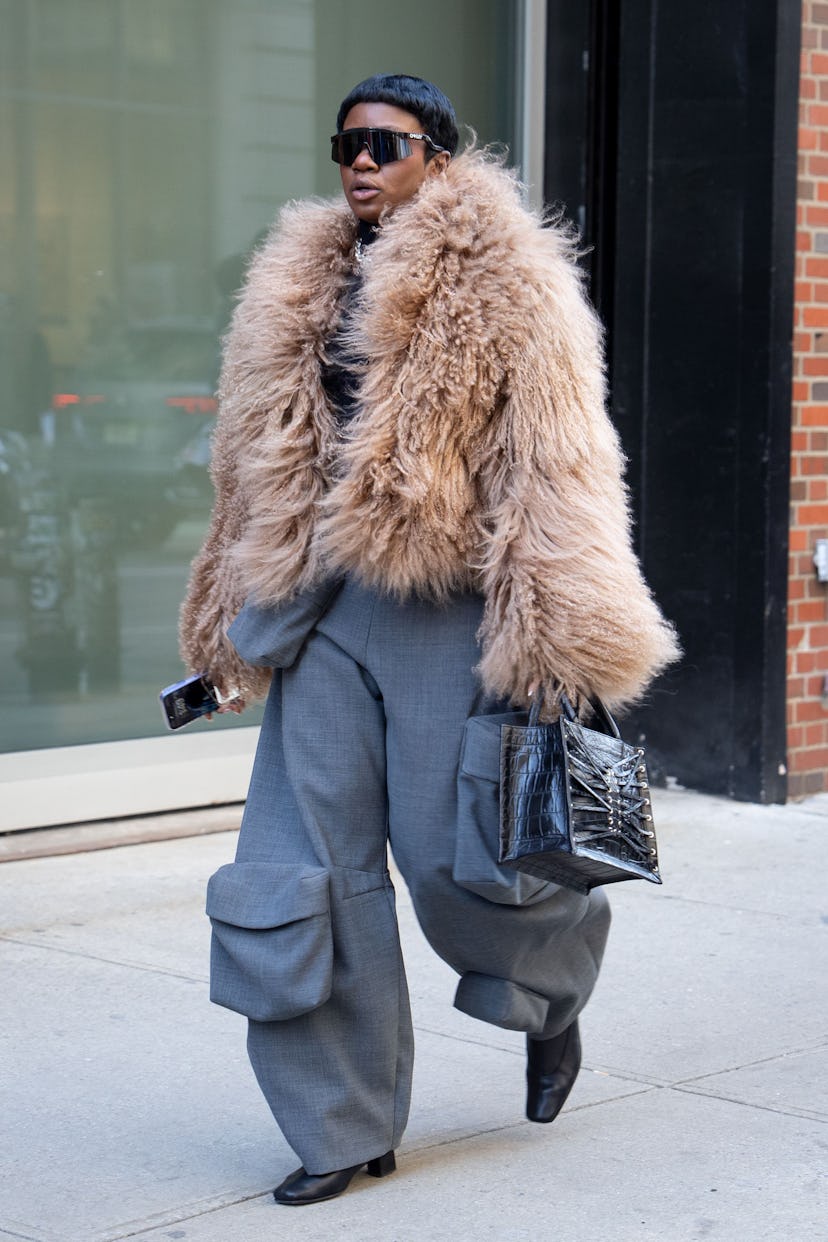 With the especially frigid forecast this winter, experts underscore the importance of functional, chill-proof outfits. “The freezing weather in New York will undoubtedly influence how people dress, likely with a noticeable shift towards more practical choices this season,” explains Net-a-Porter’s Chief Buying and Merchandising Officer Brigitte Chartrand, who adds that statement outerwear is poised to be ubiquitous. Kate Davidson-Hudson, the founder and CEO of AI-powered luxury shopping platform Vêtir, echoes her, predicting a surge in bold shearling and faux fur coats. “Think unexpected pops of color, graphic or animal prints, and exaggerated, oversized shapes,” she tells TZR. “Novelty faux fur in particular feels primed to be a standout, offering both warmth and a high-impact visual that photographs well and feels fun rather than purely functional.”