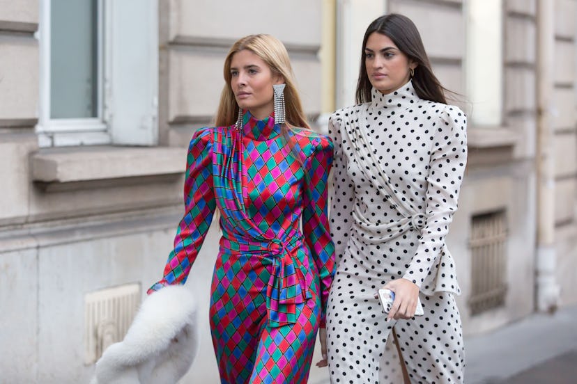One way to stand out on the sidewalks is in an attention-grabbing pattern. “I anticipate lots of playful prints and textures this season, including polka dots, stripes, jacquards, and bold color blocking, as we see people lean into dressing with a sense of fun and individuality,” says Davidson-Hudson. Don’t be surprised if you see attendees doubling down on striking motifs, either.