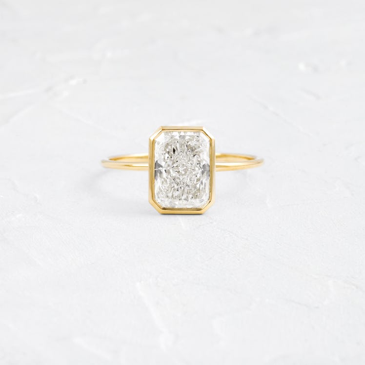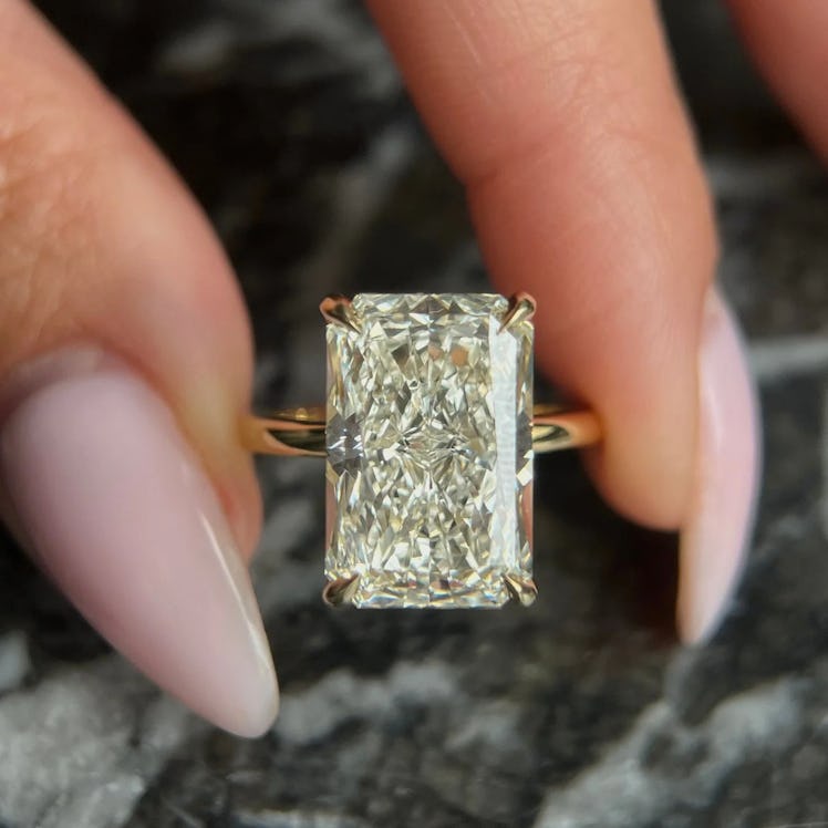 One place to kick off the search? Look to A-listers, whose rings are bringing unique silhouettes to the forefront. “The recent surge we’ve seen in celebrity engagements like Dua Lipa, Taylor Swift, and Selena Gomez has pushed things forward with respect to non-traditional designs and unexpected cuts (like antique cushion and marquise) in a great way,” explains Khadijah Fulton, the designer at White Space. “The non-traditional approach is gaining steam quickly, and even those looking for a traditional style are interested in values-aligned purchases in regard to materials and brand philosophies,” she adds. Though, the expert believes there’s still a strong audience for classic tried-and-true solitaire styles, should you prefer something more timeless.