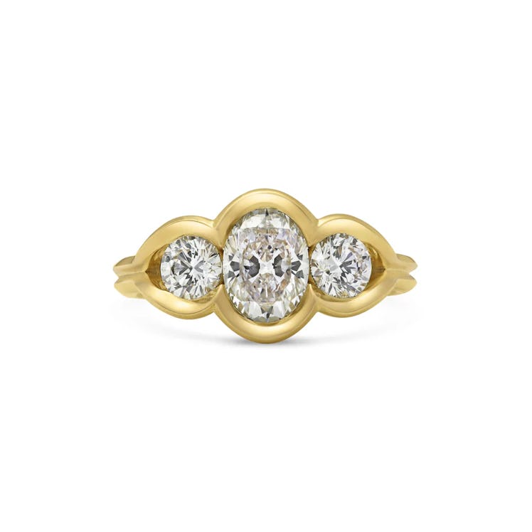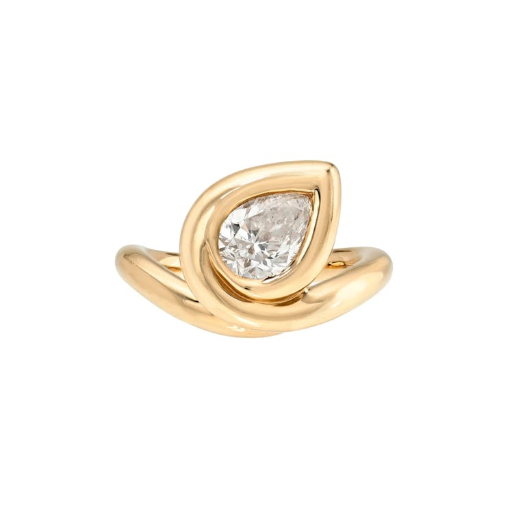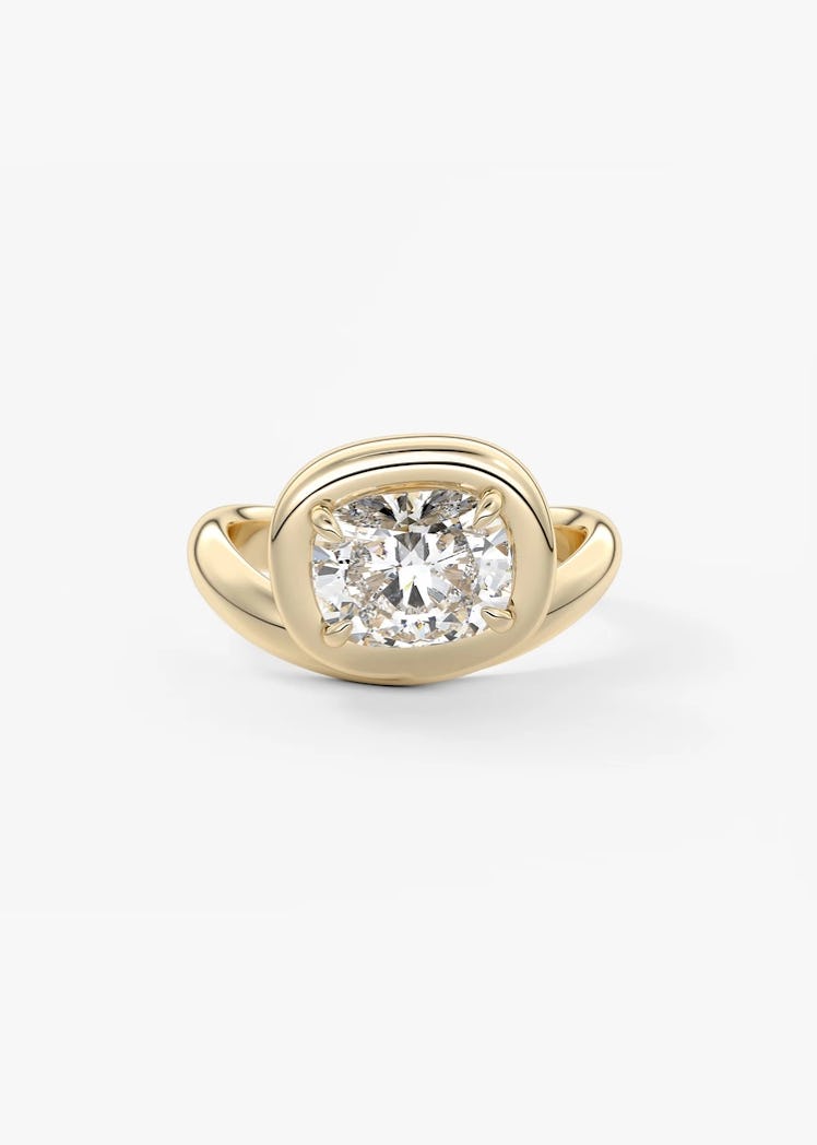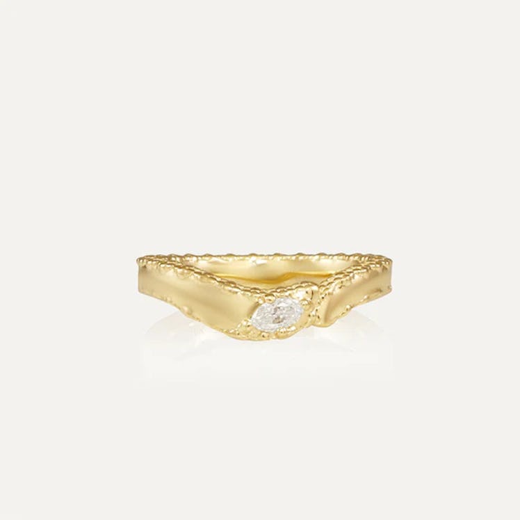 Kegan Fisher, the CEO and co-founder of Frank Darling, says sculptural shapes are perhaps the edgiest engagement ring trend of 2026. “We’ve definitely seen a clear uptick in asymmetrical and curvier designs, as well as thicker bands overall,” she tells TZR. Likewise, Jillian Sassone, the founder and creative director of Marrow Fine, is all for the look. “Chunkier, sculptural gold bands add weight and presence, giving the ring a grounded, lasting feel,” she notes.