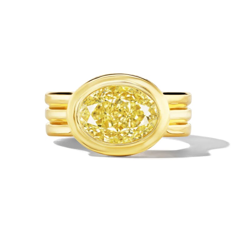 Lindseys Coggins Shield Triple Trumpet Bezel Set Yellow Diamond Engagement Ring$11,010