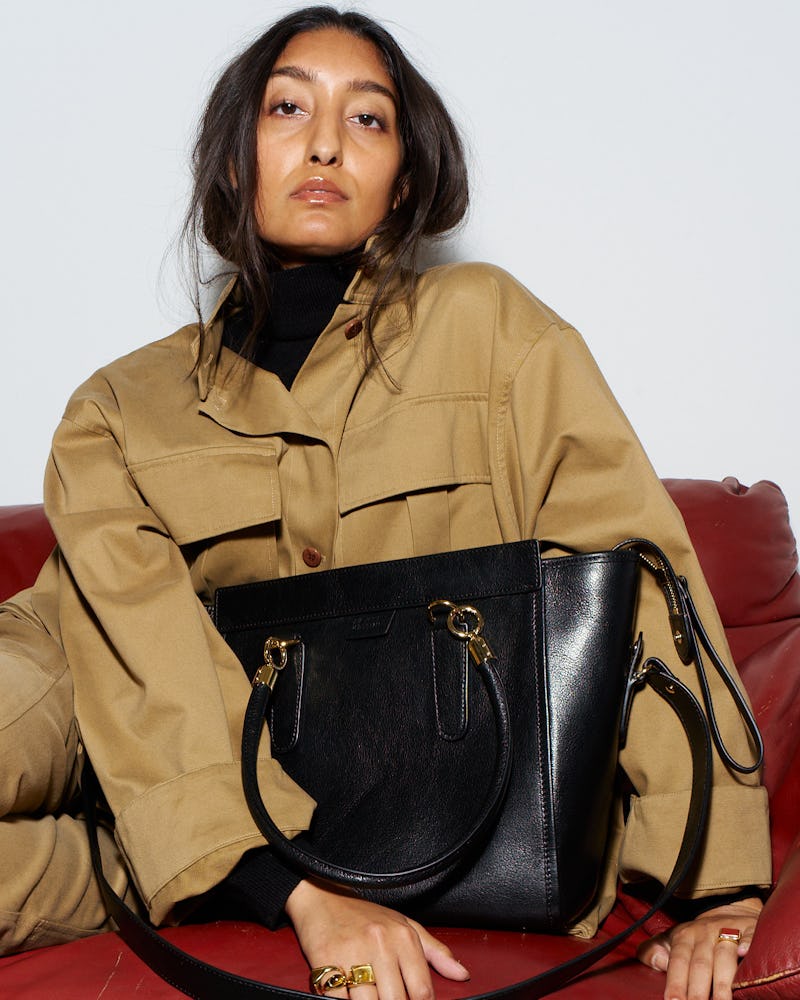 Meanwhile, she also expanded into handbags, launching her inaugural collection in September. “I’m in Italy so often at these tanneries, so it was a really natural progression,” Haller says of her latest venture. “I was always holding [sample pieces] under my arm, being like, ‘Oh, wouldn’t this make such a cute clutch?’” Her first designs — including the Ring tote and Document clutch — are produced in small batches in Tuscany using the brand’s signature Italian bufalini leather.