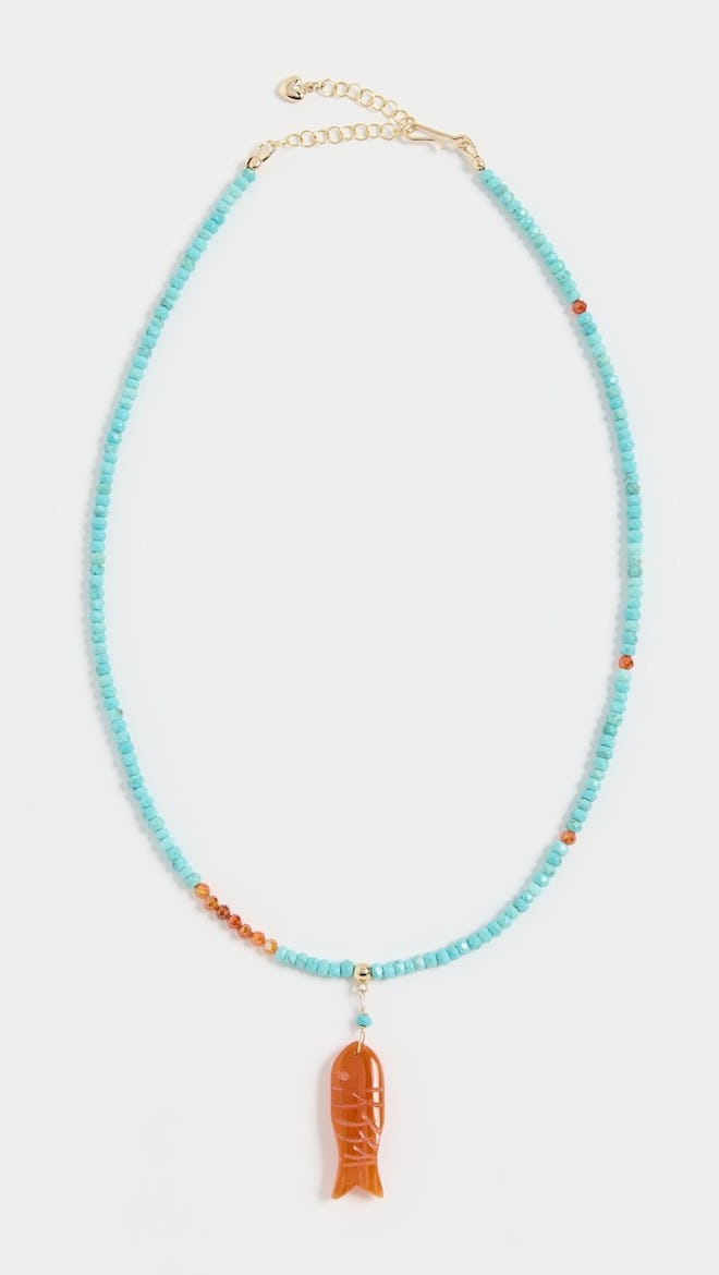 It’s not every day you see someone sporting a fish pendant necklace, making the look all the more unique. Style this Brinker + Eliza iteration atop a plain white tee.