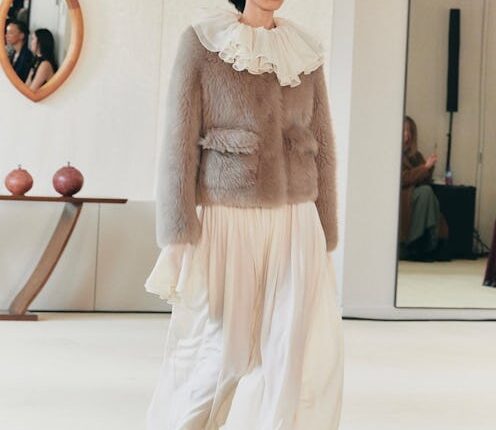 Of course, stepping out in a ruff collar isn’t for the faint of heart. “It’s obviously hard to wear and not a very practical silhouette, but one that definitely gets noticed,” notes Campbell. She adds that you needn’t necessarily wear a full head-to-toe costume to dip into the Shakespearean style. Abrego echoes Campbell, suggesting experimenting with volume by way of, say, capacious sleeves and a more fitted bottom.